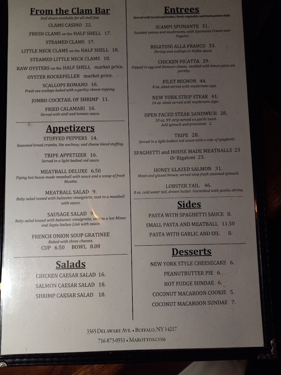 Introducing Marotto's, a culinary gem located at 3365 Delaware Ave, Buffalo, NY. This restaurant is a sanctuary for seafood enthusiasts, known for its effortlessly relaxed atmosphere and impeccable service. Guests rave about the steamed clams, praised for their size and flavor, while the broiled haddock and halibut have garnered similar accolades. Regulars celebrate the raw oysters, always expertly shucked and free from shells.
